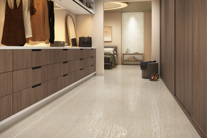 Reinterpretação do travertino romano, em sua versão mais bruta e genuína, o revestimento celebra o papel dos grandes clássicos com novas tecnologias em acabamentos acetinado e polido.