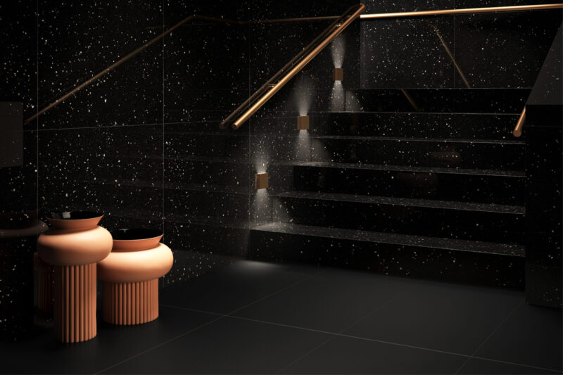 A astronomia, a mais antiga das ciências naturais, inspira a coleção Stelar. Os porcelanatos trazem tons profundos de preto, cor que remete ao cosmos, e branco, característico do brilho das estrelas. Com acabamentos natural e polido, Stelar confere uma elegância clássica ao décor e pode ser aplicado, inclusive, em fachadas e utilizado na porcelanataria para confecção de mobiliário, como mesas e bancadas.