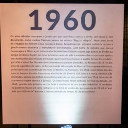 Essa história foi contada com textos assinados pelos Decornautas em grandes porcelanatos Munari, o novo formato 120x120cm, espalhados pela Casa. Em cada peça, uma década foi lembrada, mesclando acontecimentos do país e do mundo enquanto a Eliane amadurecia.
