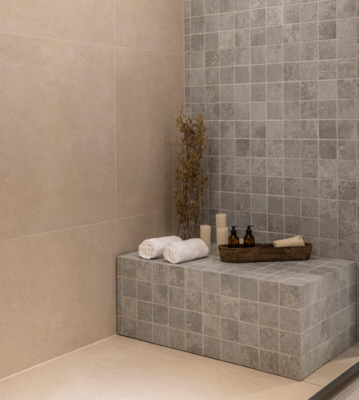 Os formatos de Capri são 20x20cm nos porcelanatos com acabamentos mate e externo. No formato 10x10cm versão mesh e 7,5×7,5cm também mesh, o acabamento é mate.